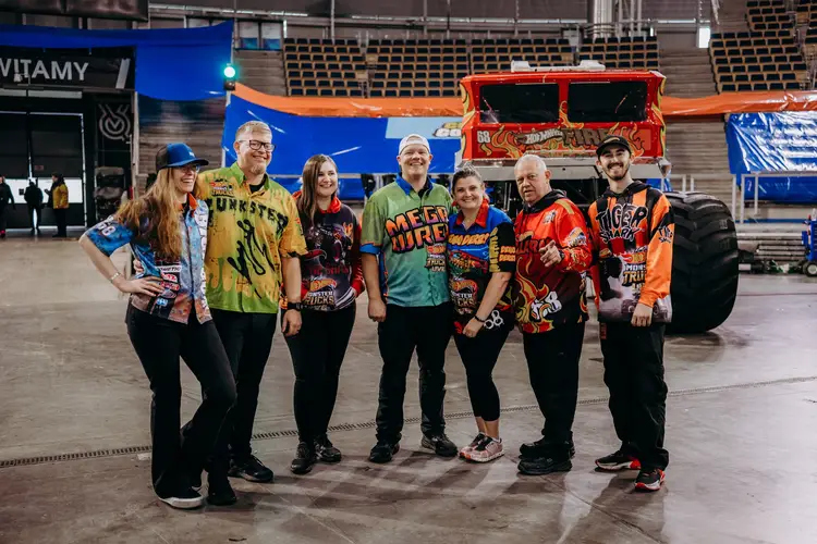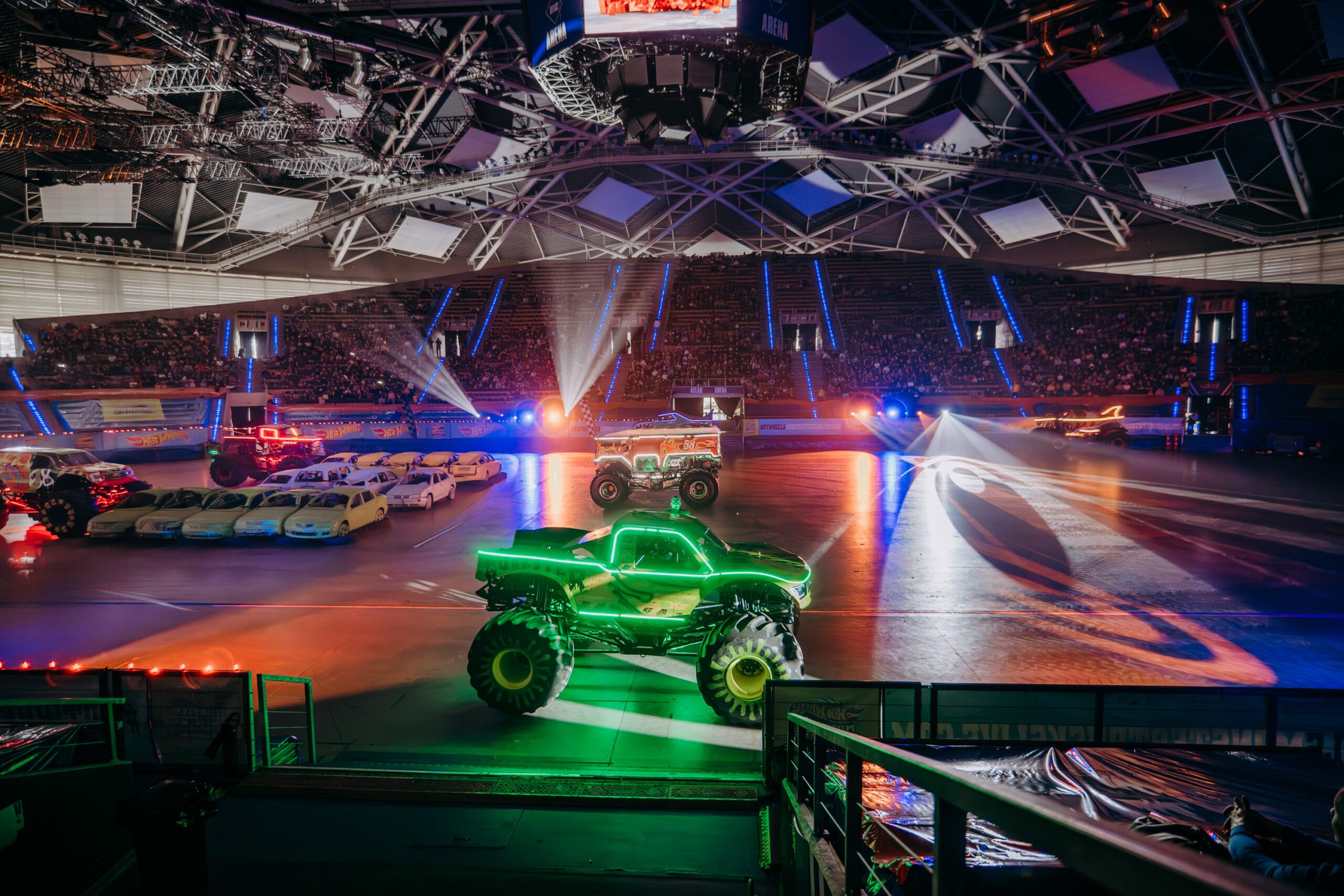 Do Łodzi zjechaliśmy z Przemkiem w czwartek, prosto na Atlas Arenę. Tam w pierwszej kolejności spotkaliśmy ekipę LiveNation, a w drugiej kolejności poznaliśmy – „The Voice, the Face of HotWheelsMonsterTruckLive” – Freddiego Shepparda. Podkreślę, że Freddie jest amerykańskim hostem wydarzenia, konferansjerem, który przyleciał do Warszawy po to, by zadbać o naszą dwójkę. To on prowadził nas, podpowiadał, stanowił ogromne wsparcie.